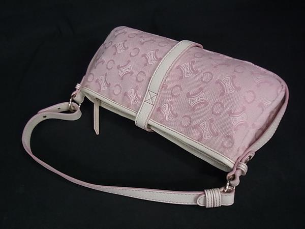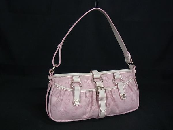 1円 ■美品■ CELINE セリーヌ Cマカダム キャンバス ワンショルダー ショルダーバッグ ハンドバッグ レディース ピンク系 FU4802