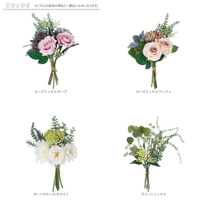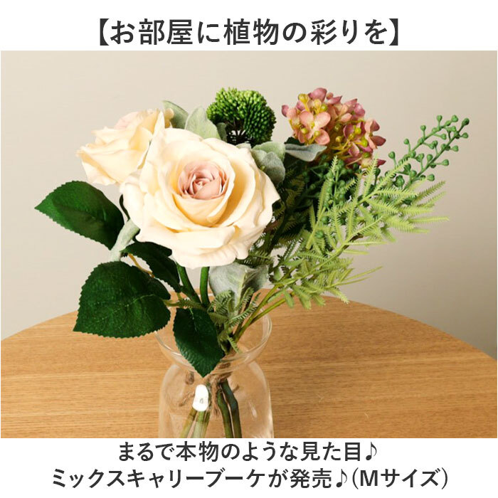 | 素材 | [ローズミックス/モーブ・ガーベラローズ/ホワイト] ポリエステル、PE、鉄、PS、紙、麻 [ローズミックス/ベージュ] ポリエステル、PE、鉄、PA、PS、紙、麻 [グリーンミックス] ポリエステル、PE、鉄、PS、紙、麻 |