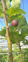 | Encanto Farms Nurseryでコーヒーの木の下で見つけた苗木。3年目には高さ20'近くまで成長し、直径3 "ほどの果実を実らせました。果皮は非常に濃い紫色で、たくさんのシミができる。果肉は甘いベリーのような風味がある。(910) |