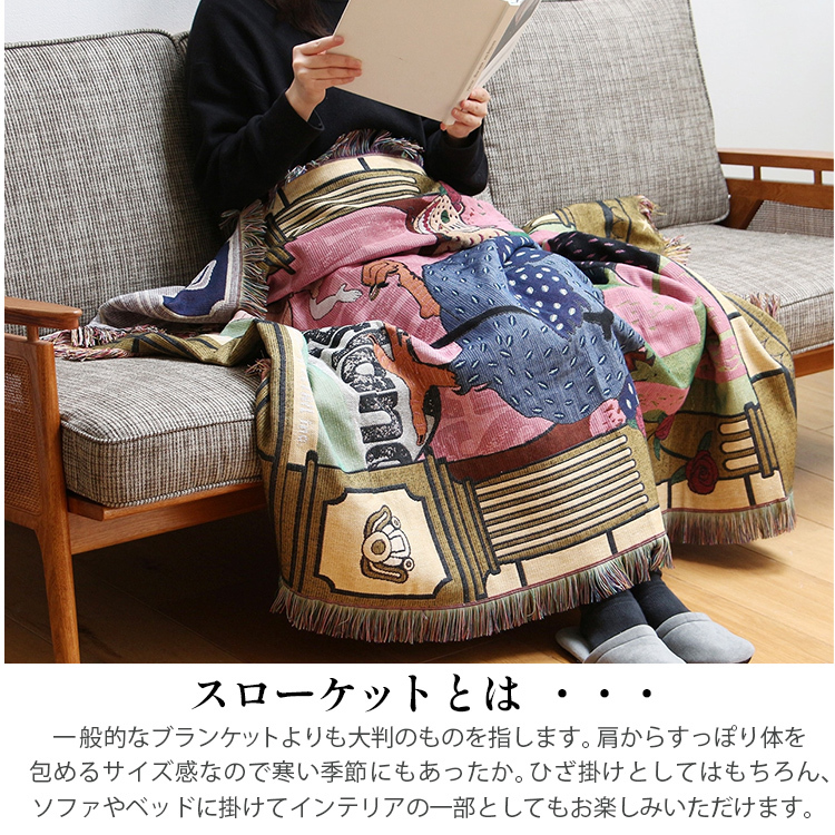 150×127cmと一般的なブランケットより大判で、ひざ掛けにはもちろん、ベッドで布団の上に掛けたり、ソファに掛けたり幅広く使うことができます。