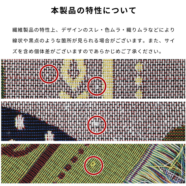 ※本製品は繊維製品の特性上、 デザインのスレ ・色ムラや織りムラなどにより、 線状や黒点のような箇所が生じる場合がございます。