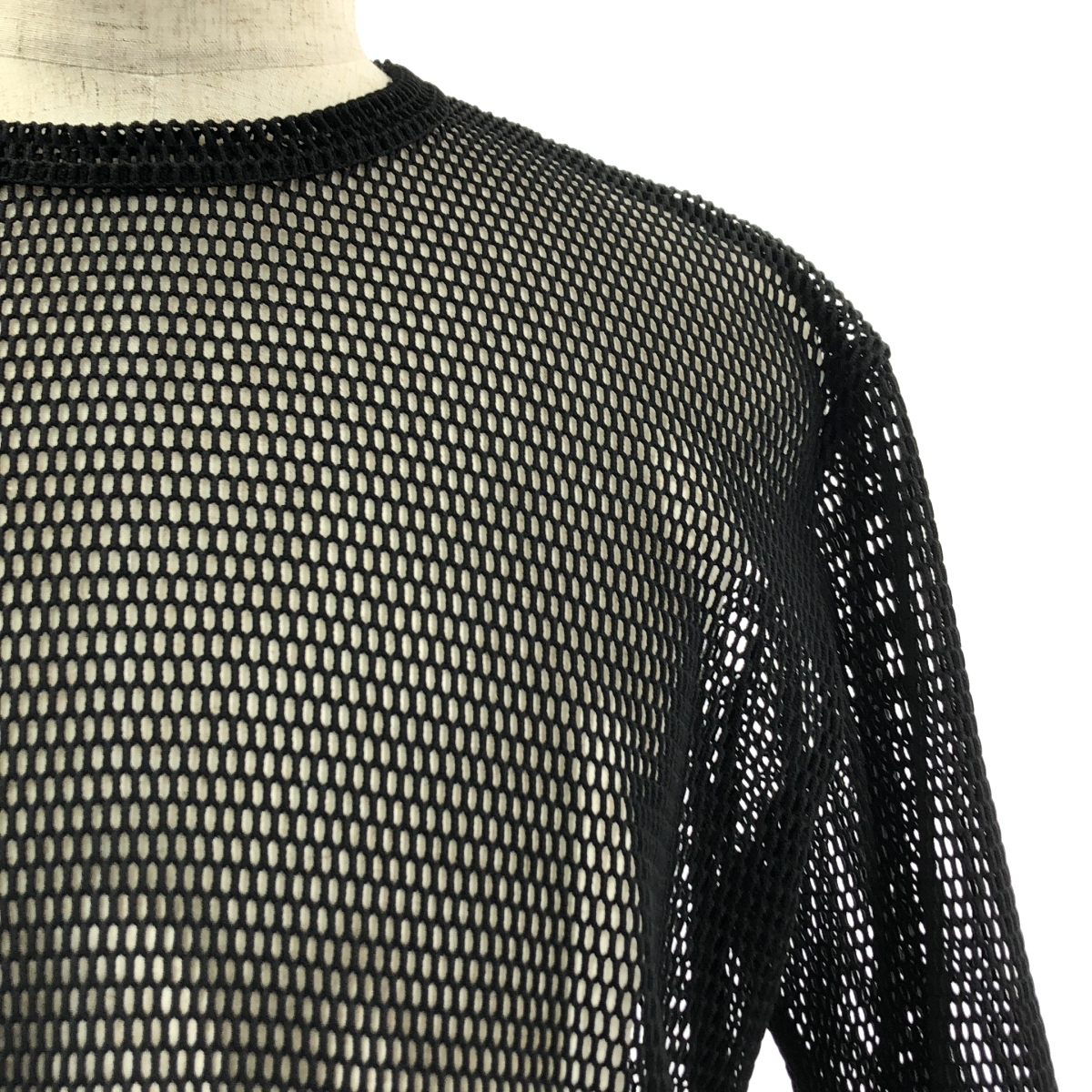 ポリエステル100%のメッシュ素材のトップスです。日本製。着用および洗濯の際には、引っかけにご注意ください。製品の特性上、多少のほつれや糸だれが生じることがあります。洗濯ネット使用、あて布使用。ドライクリーニング可能です。