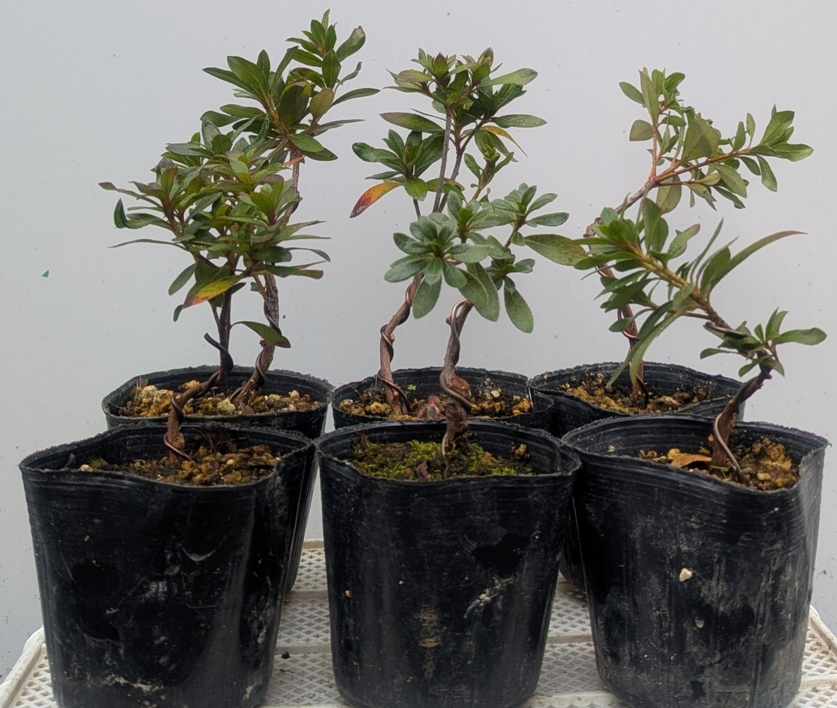 【現品・送料無料】盆栽(苗【現品・送料無料】盆栽(苗木)皐月(サツキ) 品種不明 6本(7.5cmポリポット)