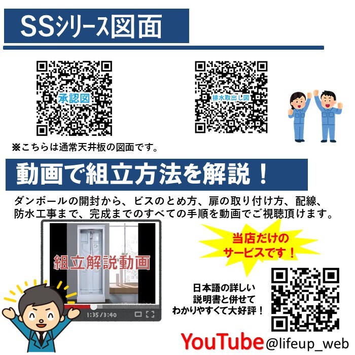 組み立て式のシャワーユニットです。組立説明書・動画がございますので、お客様ご自身で簡単に組み立てることができます。