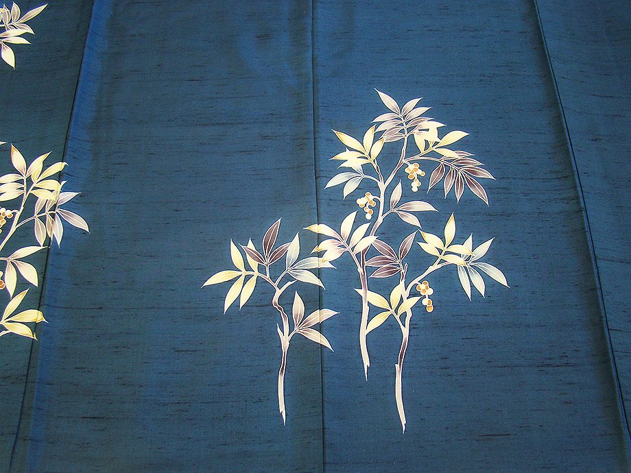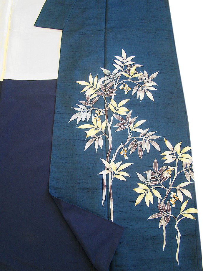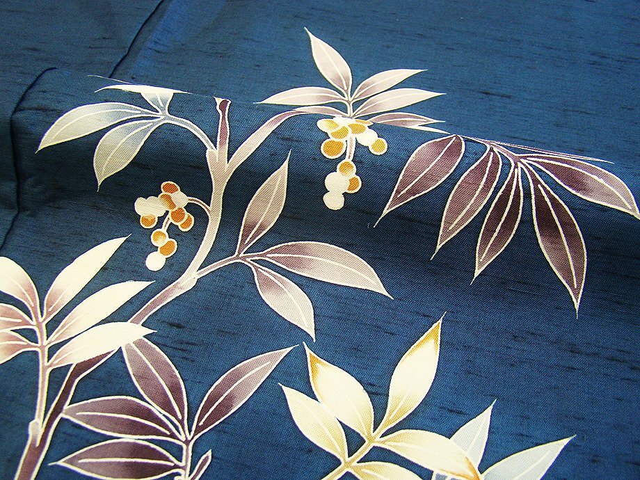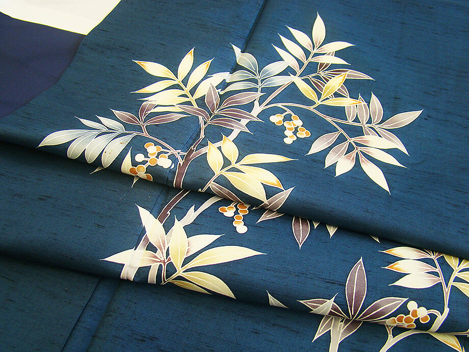 | 商品説明 | こちらのお品は「袷」でございますので、10月~5月までお召頂ければと思います。 白山紬は、石川県白峰町で織出された紬(現在の牛首紬)でしたが、今は金沢市近郊にある 織元独自の登録商標となっています。 艶感がったっぷりあり裾さばきの良さ等は牛首紬に勝るとも劣らぬ 豪華な高級感溢れる質感があります。 紬でありながらもシャリ感やハリのある艶やかさを備えた白山紬の訪問着です。 白山紬の情感を感じる節糸使いの、大変にさらりとしたしなやかな風合いが心地よく、 織りあげられた美しい紬地を、深みと奥行きに溢れたお顔映りも上品な彩美に染め上げました。 濃い藍色地に黄土、黒紅、生成り、灰色等の花草柄の染柄、 八掛は群青色(正絹)、幅広い年代の方にお召頂けます。 |