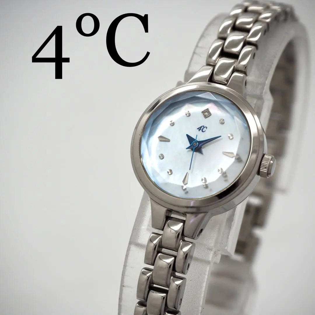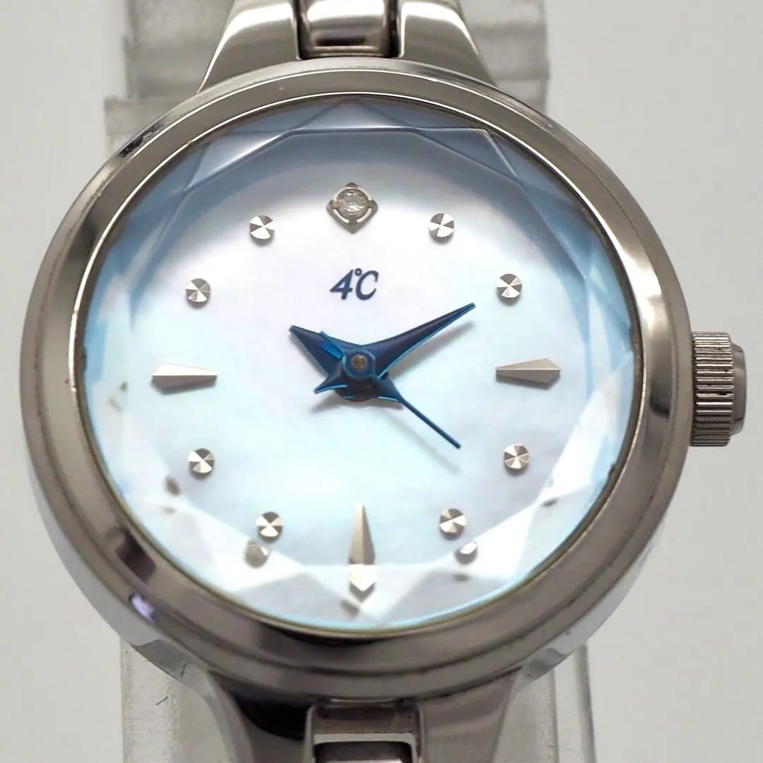 442 4℃ ヨンドシー レディース 時計 カットガラス シェル文字盤 シルバー