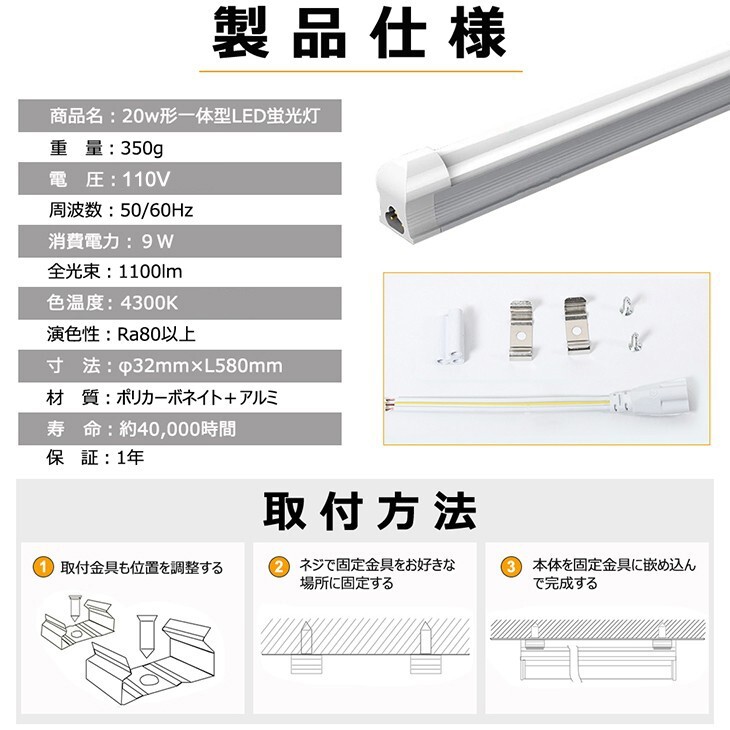 一体型直管LED蛍光灯20W形(取り付け道具付き)X25本
