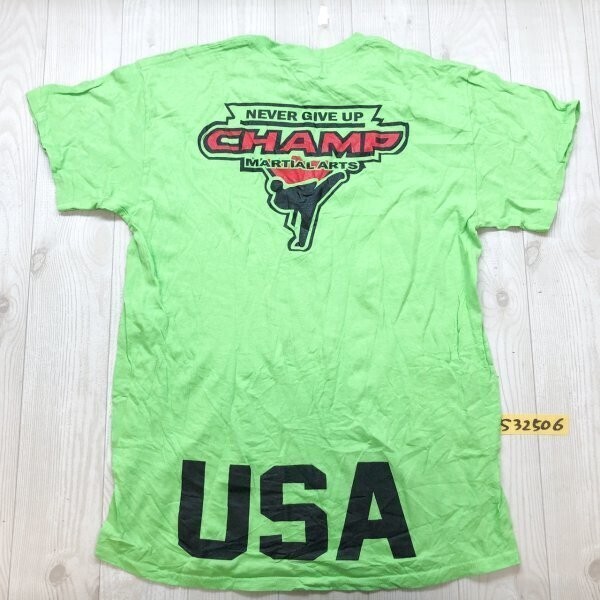 CHAMP MARTIAL ARTS メンズ バックプリント 半袖Tシャツ M 黄緑 です。