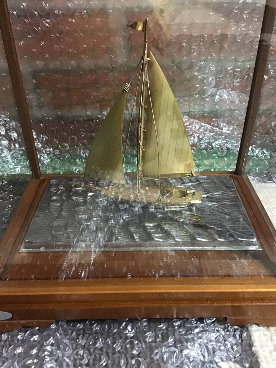 銀製 刻印 ヨット 船 ガラスケース 付 置物 シルバー SILVER 銀 ミニチュア 模型 工芸品
