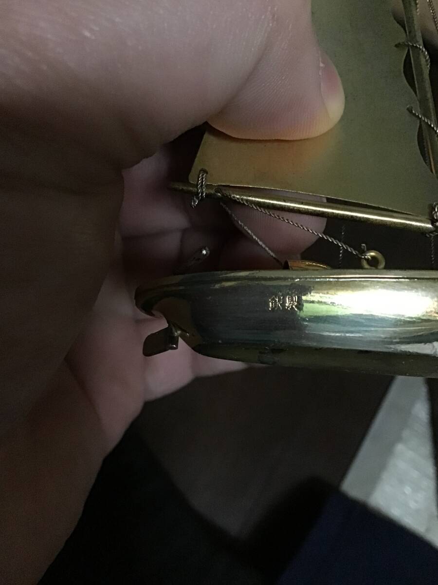 素人の私にはどこまでが銀なのか分かりませんがヨットと波の金属部分は重さ101gです。