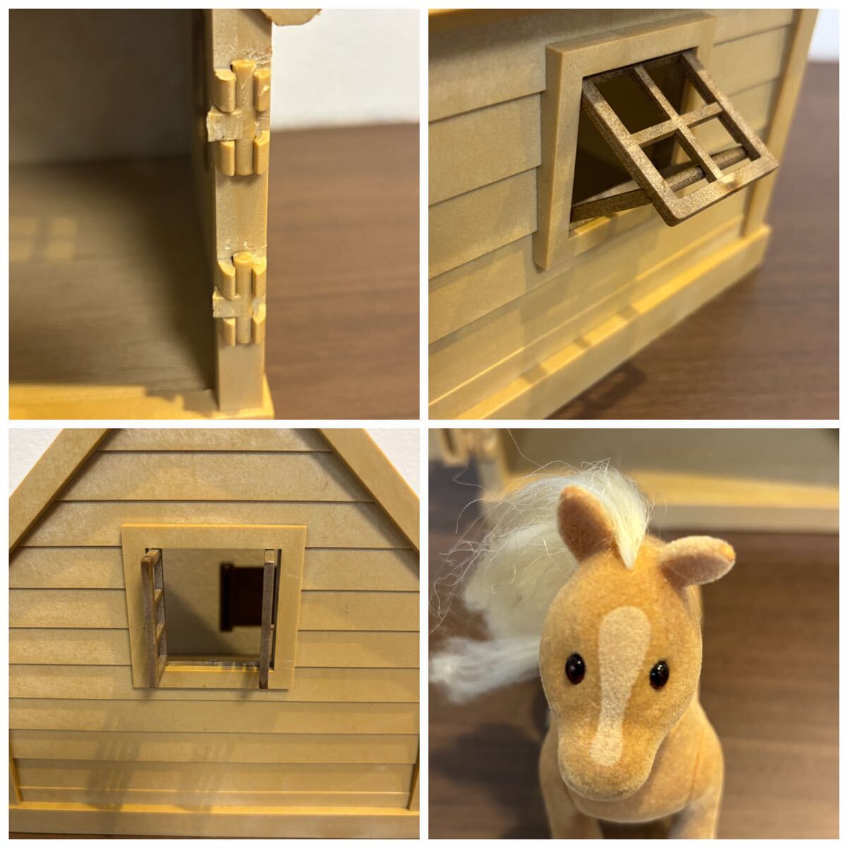 馬小屋は片側のドアが壊れていて、残っているパーツが接着剤のようなものでついていて取れないのでこのままお譲りいたします。片側は開閉します。