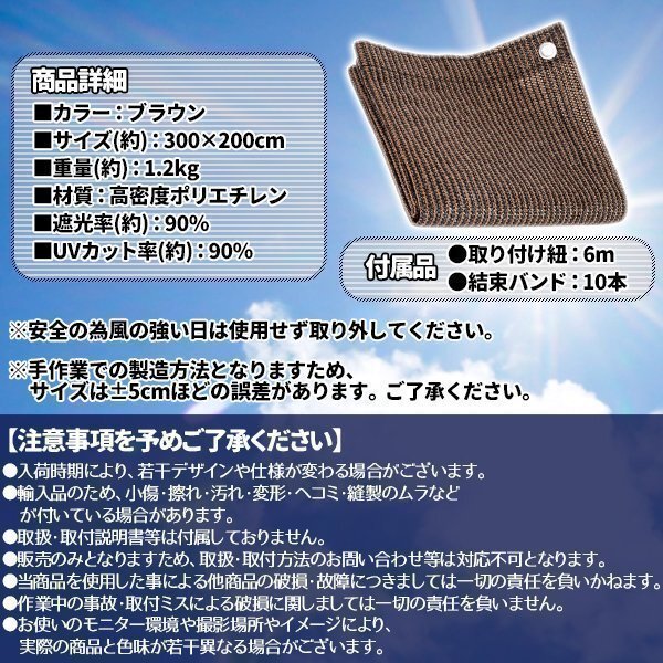 日よけ サンシェード 2m 3m UVカット率90% 遮光率90% オーニング シェード ひもとバンド付き 高密度ポリ素材 丈夫 通気性ベランダ バルコニ
