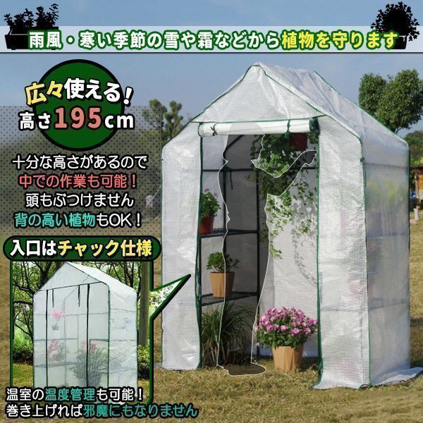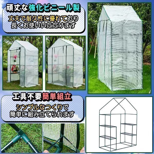 ビニールハウス 家庭用 温室 3段 グリーンハウス ガーデンハウス 家庭菜園 ビニール温室 フラワーラック 菜園ハウス ペグ ロープ付属