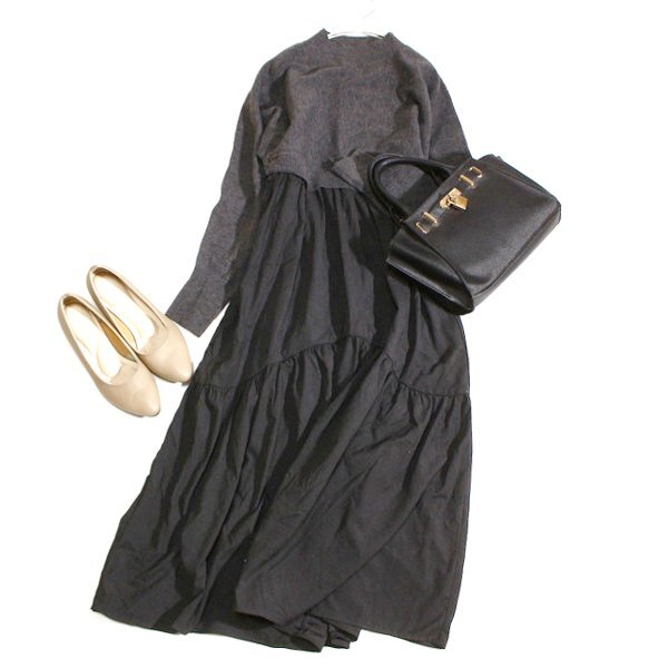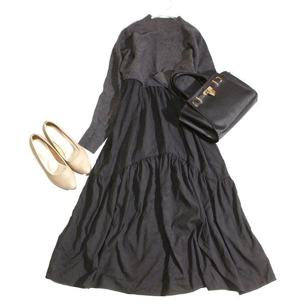 美品 Vis ビス 綺麗め ニット切り替え ロング ワンピース F 秋 冬 25D10