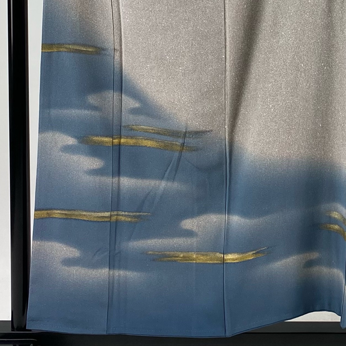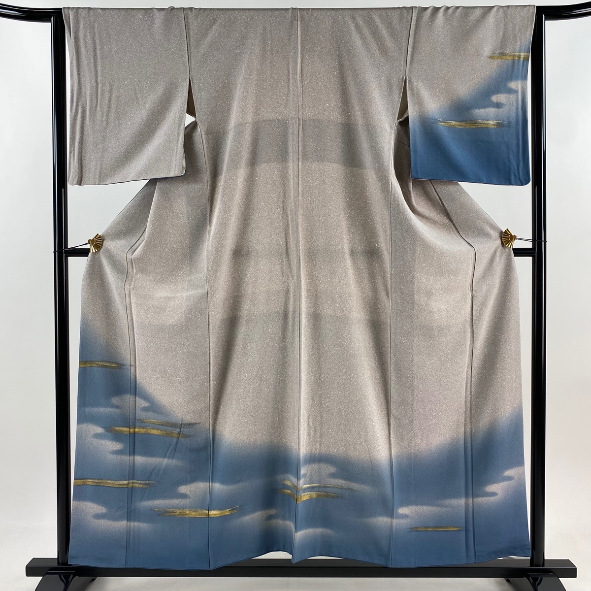 | 付下げ 秀品 霞 金彩 ぼかし 灰紫 袷 身丈157 裄丈66 M 正絹 【中古】 |