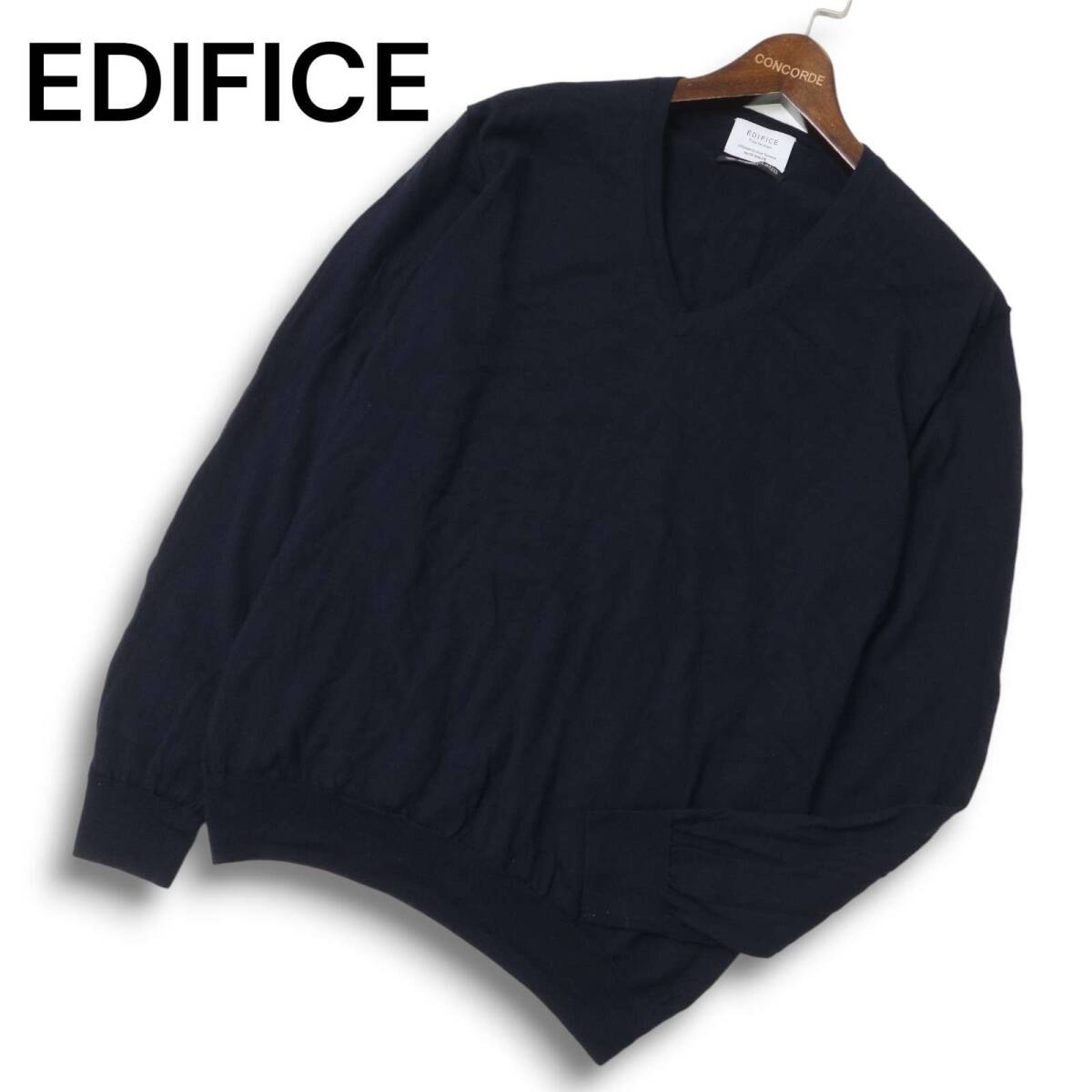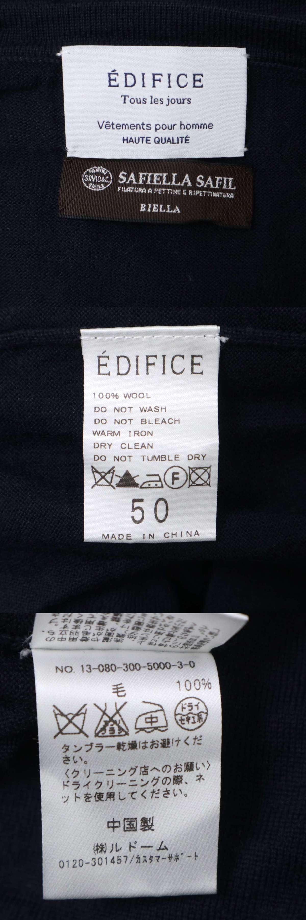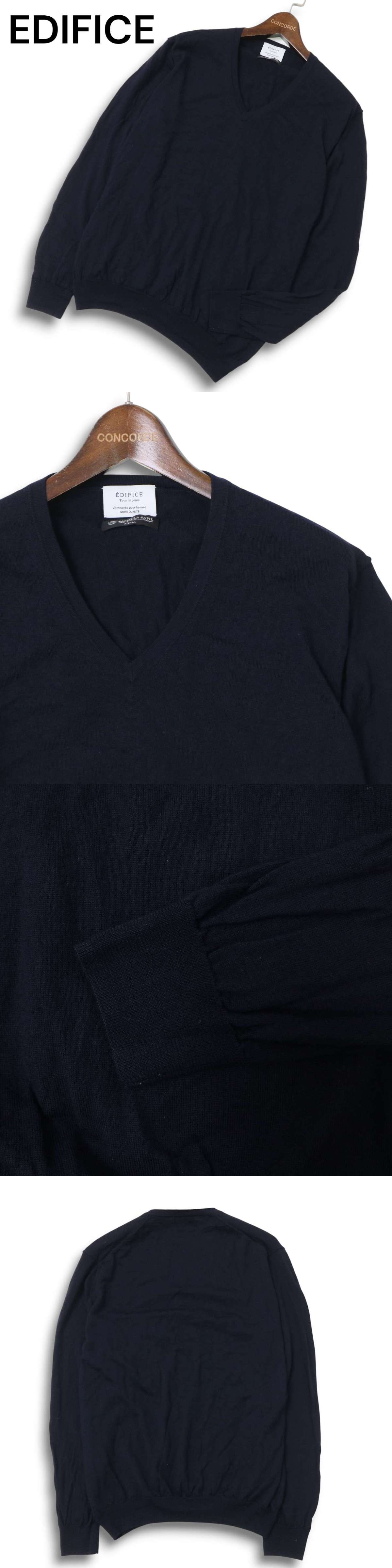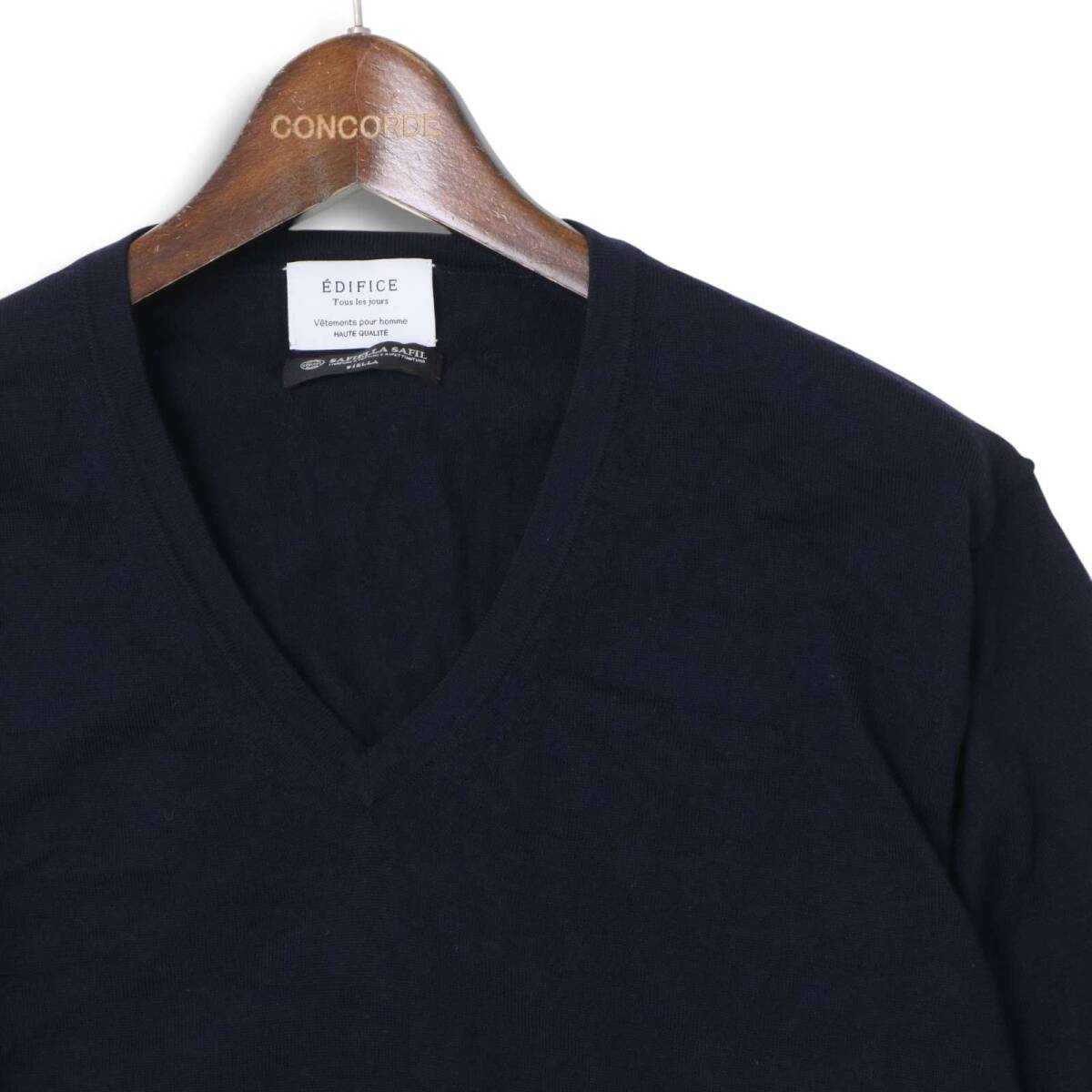 EDIFICE エディフィス 【 イタリア製生地 BIELLA SAFIELLA SAFIL】 Vネック ウール100% ニット セーター Sz.50 メンズ 紺