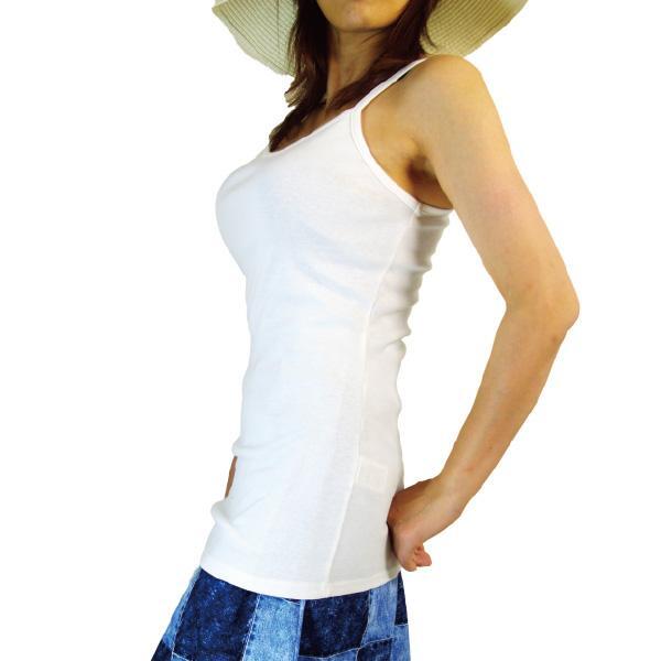 LL オフホワイト キャミソール 綿 インナー レディース ロング丈 無地 新品