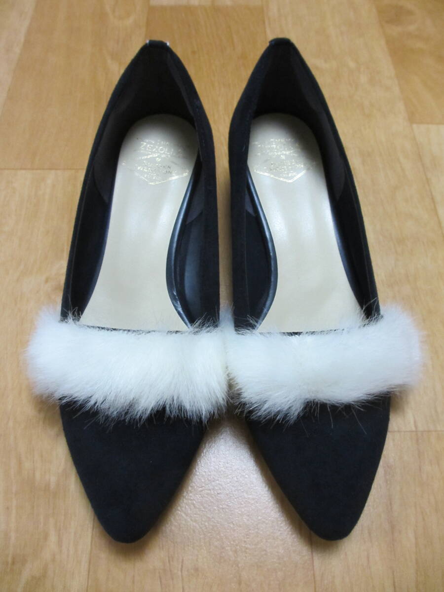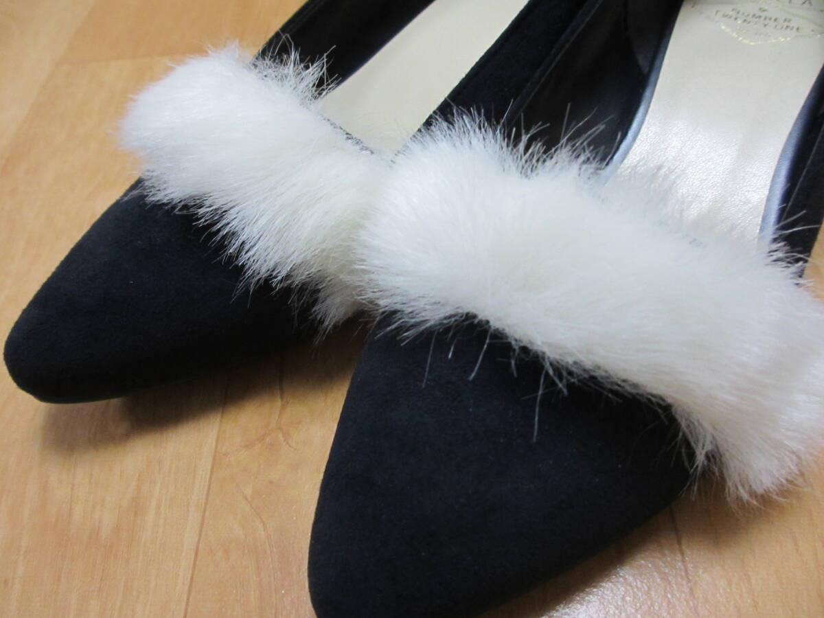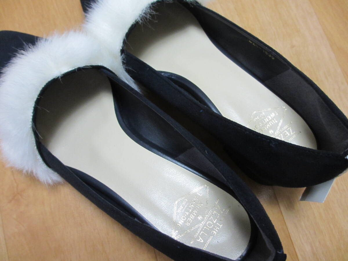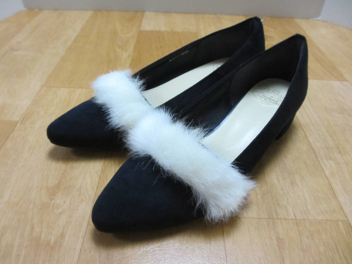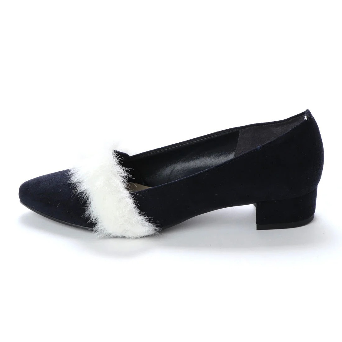 【未使用】NT エヌティ★ファー付き スエード パンプス 紺/23.0cm