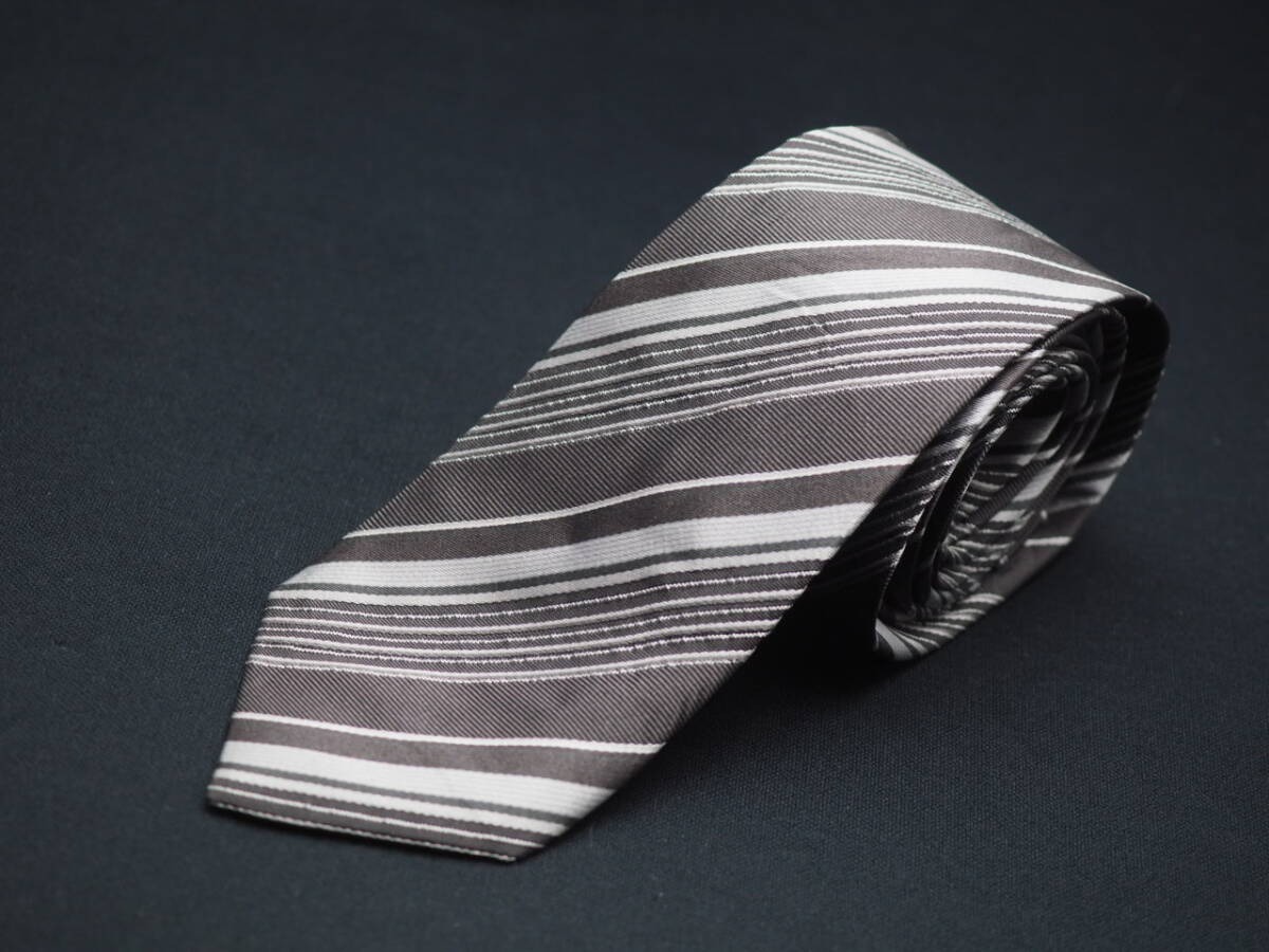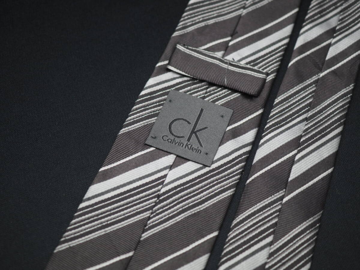 【Calvin Klein カルバンクライン】 G1024 ブラウン シルバー系 SILK ブランド ネクタイ 古着 良品 転売 仕入