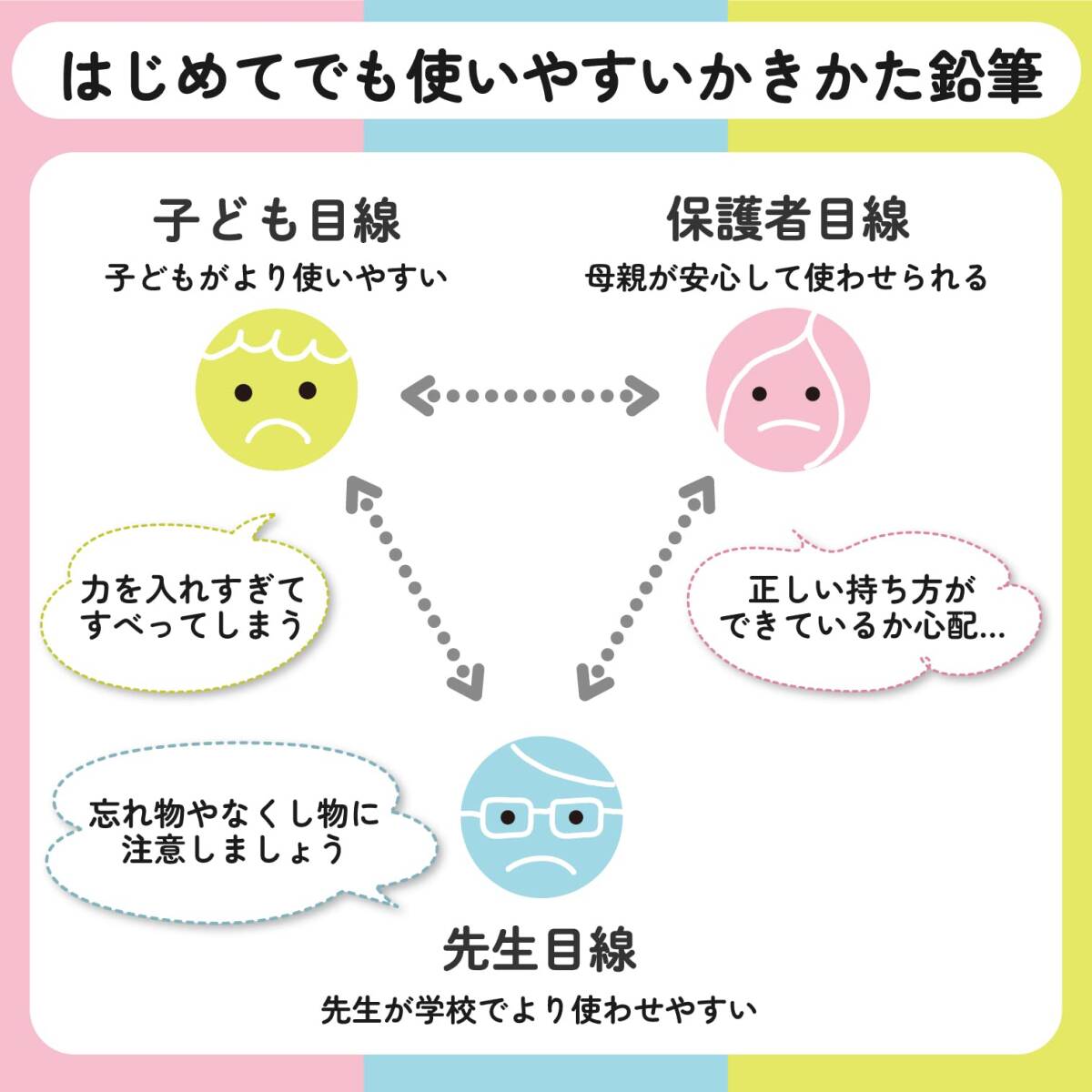 ・【特長1】正しい持ち方が自然に身につく三角軸鉛筆