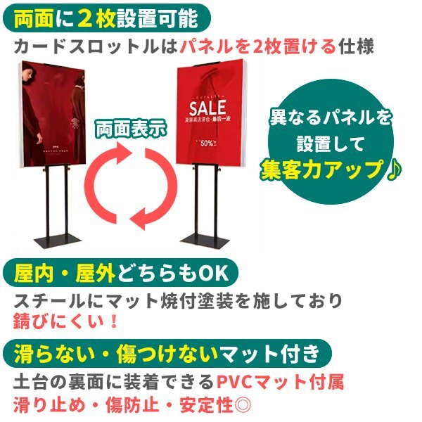 両面 スタンド看板 ポスターパネル スタンド 自立看板 高さ調節 屋外 室内 案内板 集客 目立つ サイン表示 メニュー 店舗 レストラン 受付