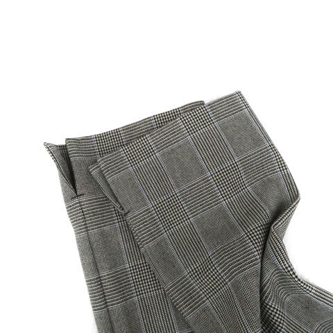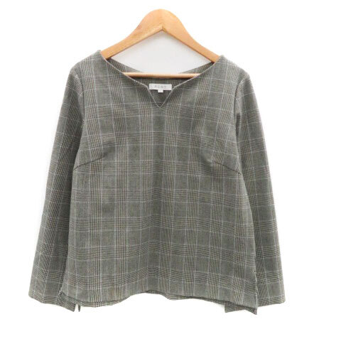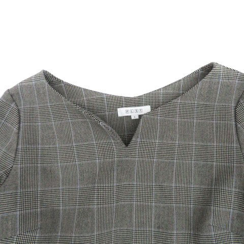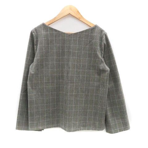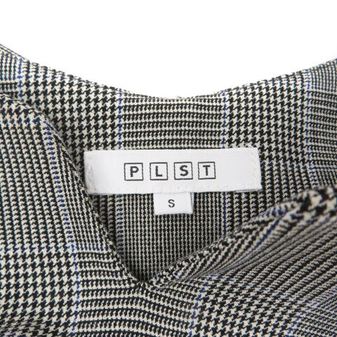 プラステ PLST カットソー スリットネック 長袖 グレンチェック柄 S グレー 黒 ブラック /HO35 レディース