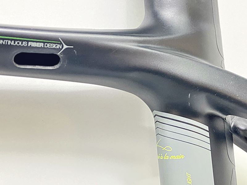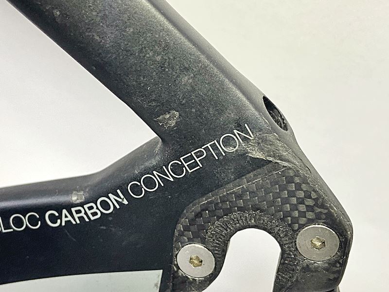 トップチューブにキズ、細かい塗装ハゲがあり、シートステーにもキズが見られます。
