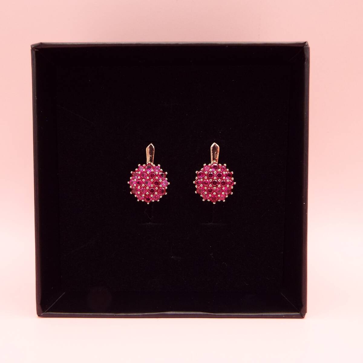 華やかに輝くルビー風のストーンを贅沢にあしらったエレガントなピアス。