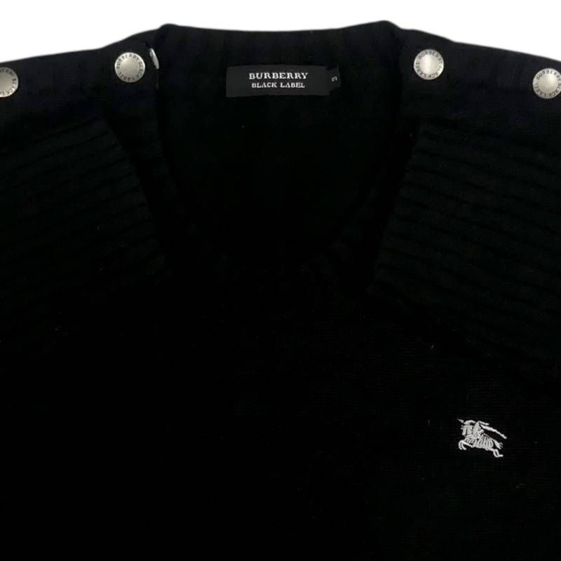 即決★BURBERRY BLACK LABEL★メンズ L 廃版 ニット セーター バーバリーブラックレーベル 3 黒 ウール 三陽商会正規 ナイト刺繍