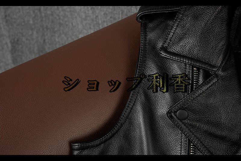 商品説明 採寸は下記通りです、ご参考ください。素材:牛革 S: 着丈60cm バスト96cm 肩幅37cmM: 着丈61cm バスト100cm 肩幅38cmL: 着丈62cm バスト104cm 肩幅39cmXL: 着丈63cm バスト108cm