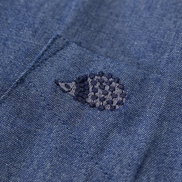 【CHUBEI】 毎日の装いを心から楽しむことをコンセプトに、機能的で遊び心を加えたSTANDARDアイテムを提案。タウンカジュアルとアウトドアカジュアルをミックスし、様々なシーンで活用頂けるライフスタイルブランドです。 一年を通して着用できるコットン100%ツイル素材のボタンダウンシャツです。 適度な厚みのサラリとした風合いで、ナチュラルなストレッチ性があり、肌触り・着心地ともに快適な仕上がりとなっています。 タテ糸とヨコ糸の色を変えたシャンブレー配色になっており、軽く羽織るだけでも様になるデザインです。 左胸にポケット、背面にボックスプリーツとロッカーループ、裾の下前立てに織りネームタグ、ポケット部分にはトレードマークであるハリネズミのワンポイント刺繍が入っています。 |