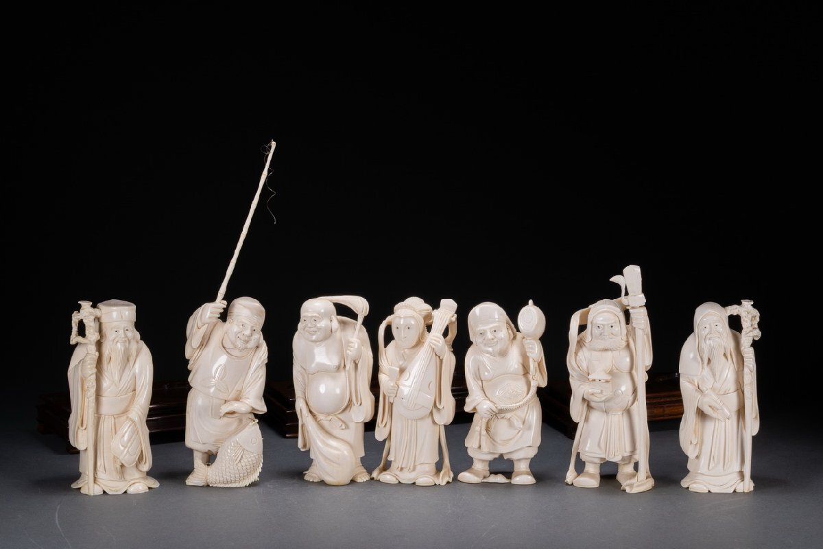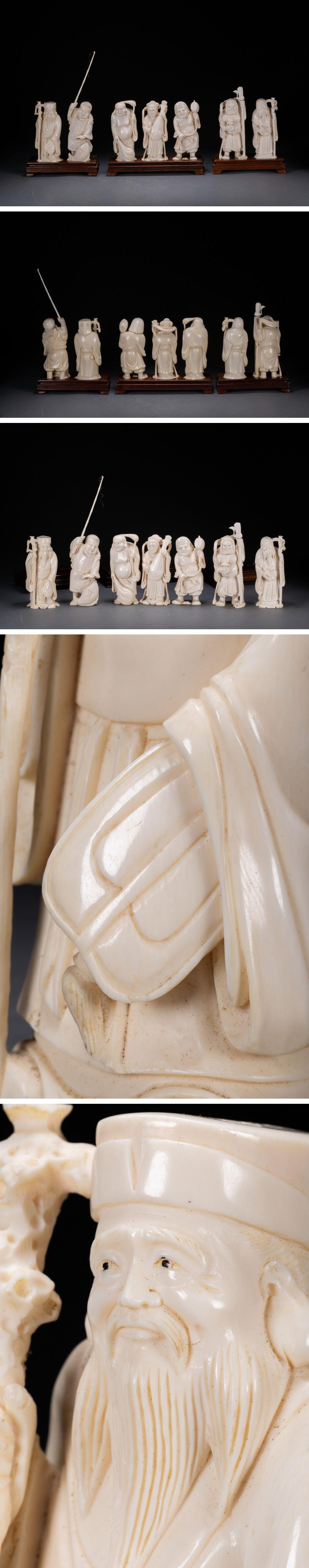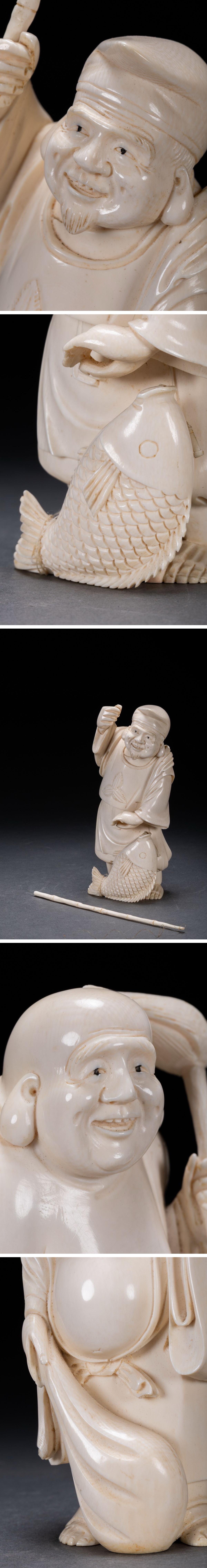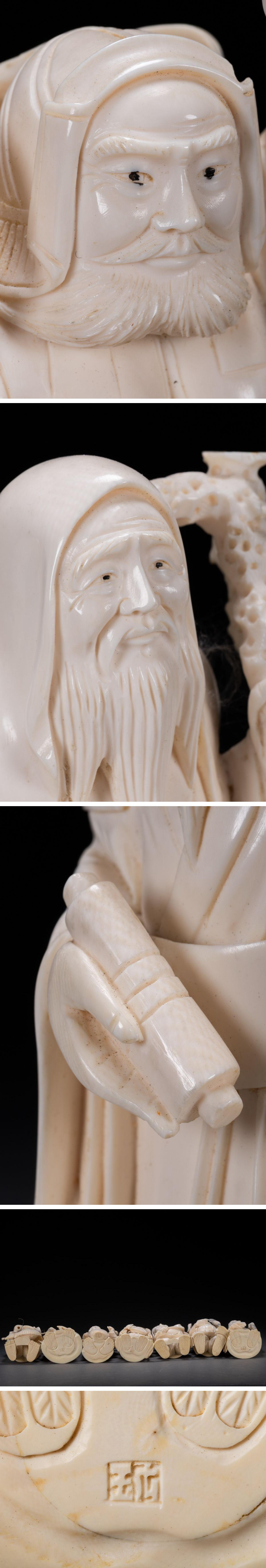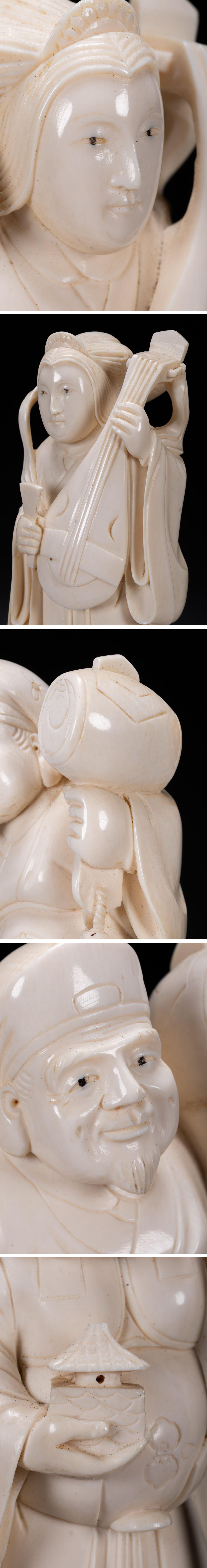 【雲錦】某有名オークション購入 時代物 特殊白材 巨大七福神造像2.9㎏ 古置物 古擺件 古美術 時代コレクション7L10-70S8