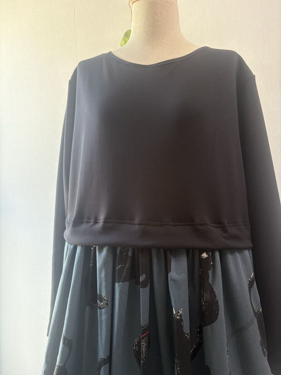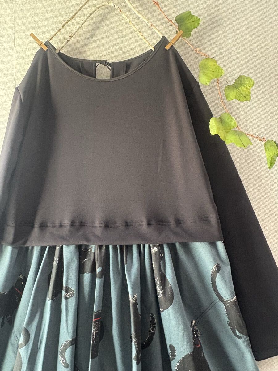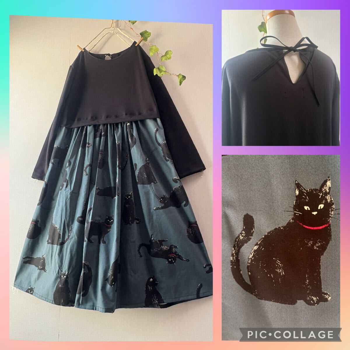 スカートが猫柄のワンピースです。 背中のリボンもポイント! 両サイドにポケット付 柄:コットン/リネン素材 無地部分:伸びるニット生地 ポリエステル/コットン/ウール 一点一点手作りした品です。 サイズ:フリーサイズ <平置き寸法> 身丈108cm・脇下身幅48cm 肩幅44cm・袖丈54cm ※丈詰め・ポケット付けなどのお直しは承っておりません。 | |||