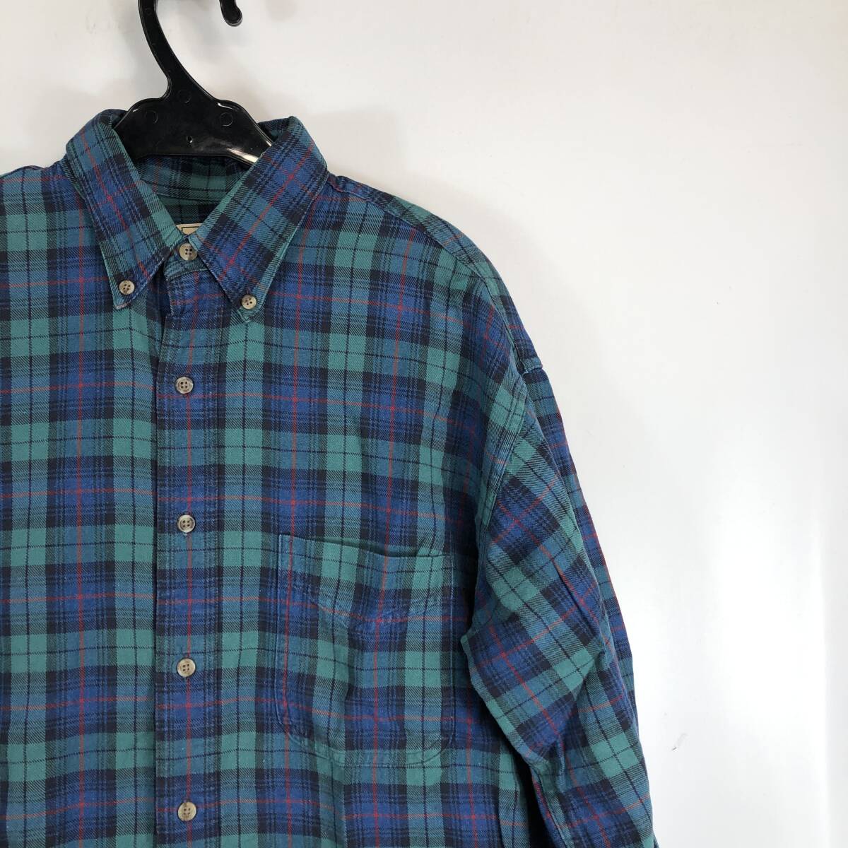 90s L.L.BEAN エルエルビーン 長袖ボタンダウンシャツ グリーン系 チェック柄 Sサイズ メンズの出品です。