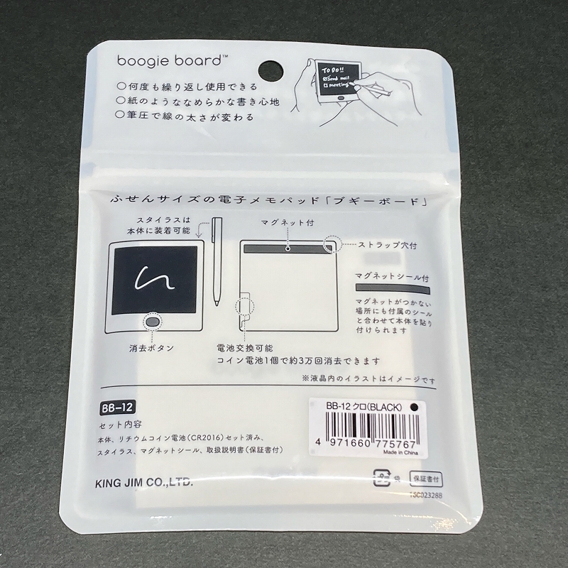 送料無料☆未使用☆boogie board BB-12 クロ 電子メモパッド/ブギーボード KINGJIM キングジム 付箋サイズ ステーショナリー★4Pen
