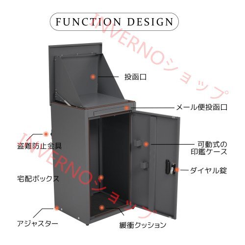 宅配ボックス 据置型 大容量 ポスト一体型 投函口3つ 複数投函 屋外 大型 戸建て 一戸建て用 おしゃれ マンション 防滴仕様 ポスト 配達ボ