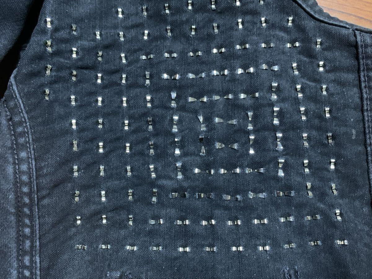 スタッズのデザインに関してはウルフズヘッドの間違いのない技術のもとに芸術的かつ洗練されたクールでオンリーワンなスタッズワークです。スタッズのみで立体感を感じさせる素晴らしい技術です。こちらのジャケットはコーディネートも服を選ばずに使用でき、このジャケット1点持っているだけでコーディネートの主役になるぐらいウルフズヘッド独特の存在感があるアイテムになります。コンディションに関しましては私が着用してというよりもとからビンテージのスレや使用感があるアイテムになりますのでビンテージに理解のある方でしたらこれからもしっかりと着用して頂けるコンディションかと思います。ビンテージ品になりますので過度に神経質な方や細かく気にされる方にはオススメしません。服、スタッズワークは本当に素晴らしいので一生モノになり、長く付き合っていけるアイテムかと思います。まず手に入りませんし、こちらと同じものはありませんのでお好きな方はぜひご検討のほどよろしくお願いいたします。