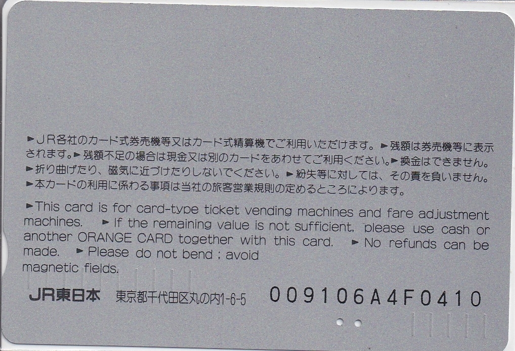 使用済フリーオレンジカード JR東日本 S・PAL 東北新幹線東京駅乗り入れ記念 500円券 説明文参照