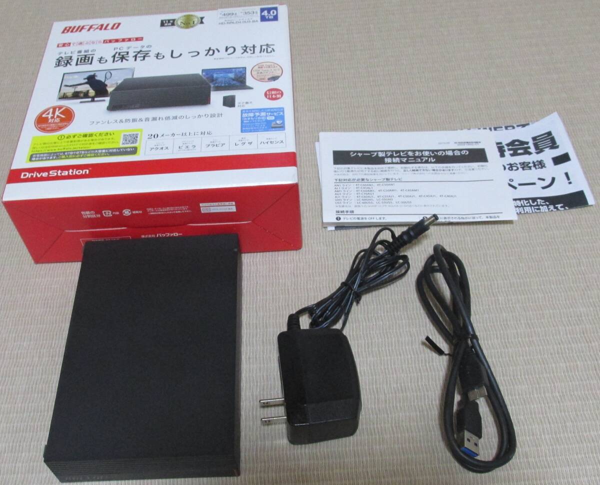【中古動作品】BUFFALO製 3.5インチ USB3.0/2.0 外付けハードディスクドライブ HD-NRLD4.0U3-BA  4TB