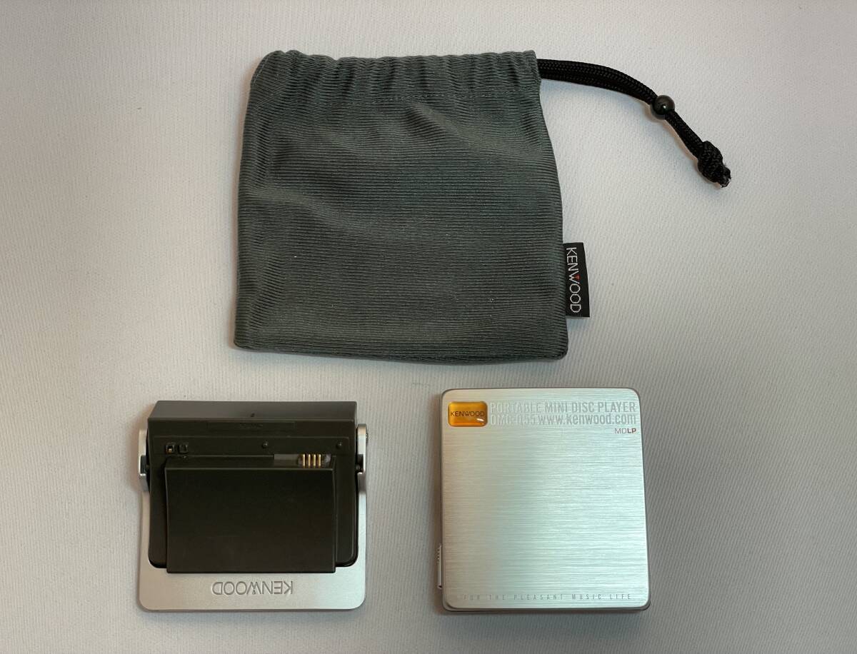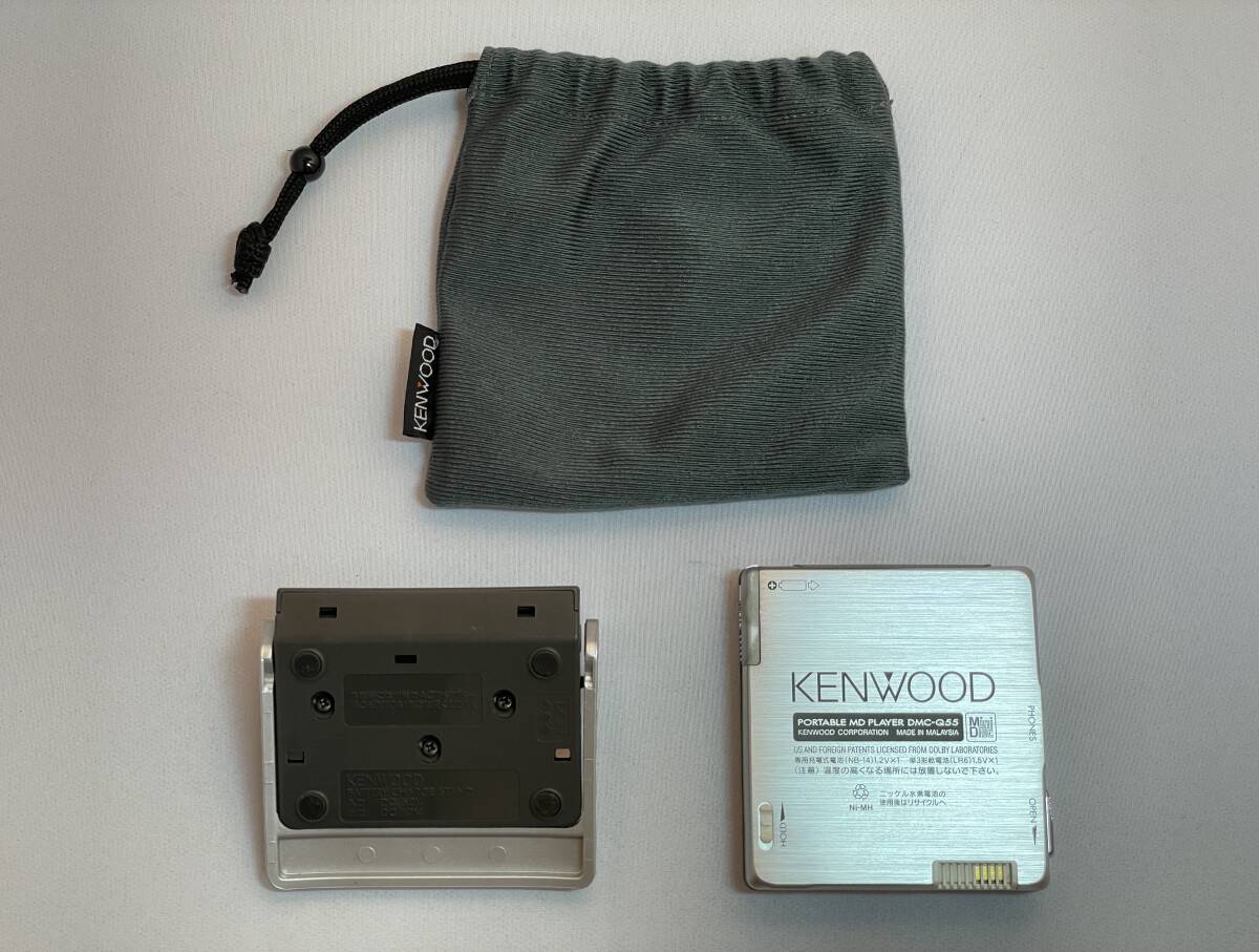 【中古・美品/通電のみ確認】★KENWOOD/ケンウッド;ポータブルMDプレーヤー(DMC-Q55)◆充電用スタンド◆専用袋★