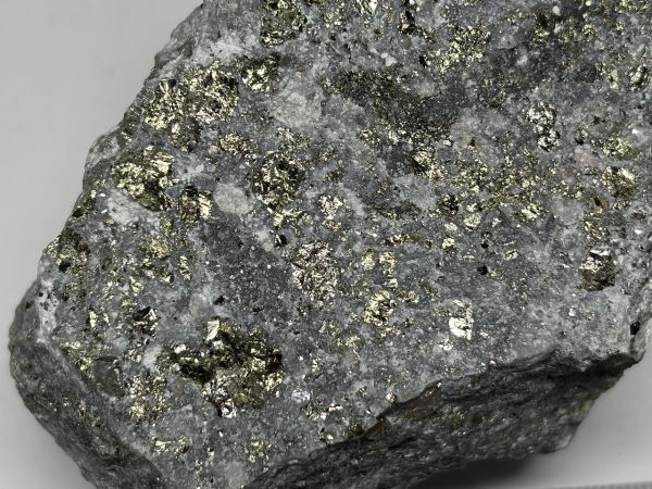 十二峠鉱山産の黄銅鉱です。黄銅鉱を主体とする銅鉱石で、少量の黄鉄鉱が伴われます。