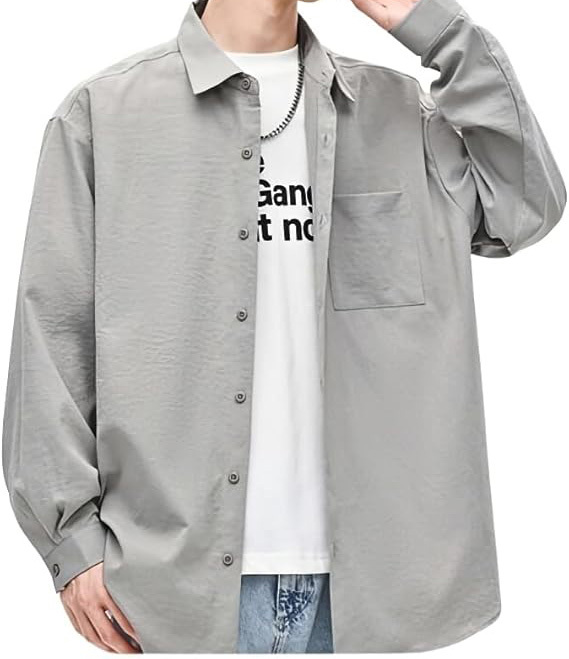 メンズ シャツ 春服秋服 長袖 無地 カジュアル L