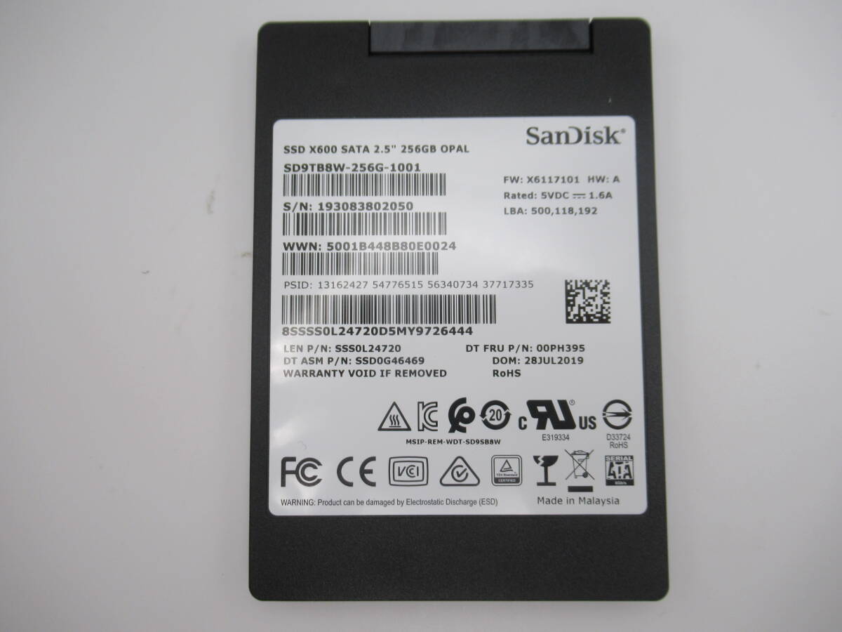 | ♪商品説明♪ | Sandisk X600 SSD SATA 256GB 2.5インチ 中古 動作確認済みです。 写真は現物です。写真にもご確認の上ご入札下さい。 中古品ですので使用感が御座います。動作確認済みですが、相性は保証いたしません。 適用機種はよくご確認した上で、ご入札くださいませ。 |
