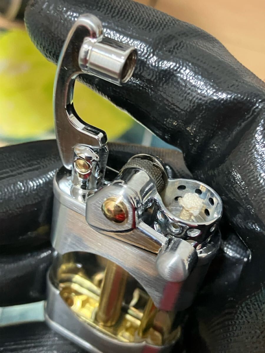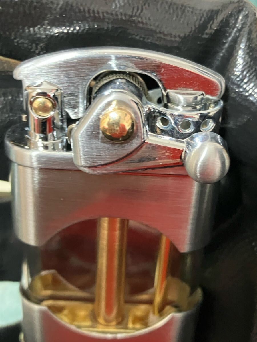 蓋が押し上がり、アームを離すと「シュッ」と着火します