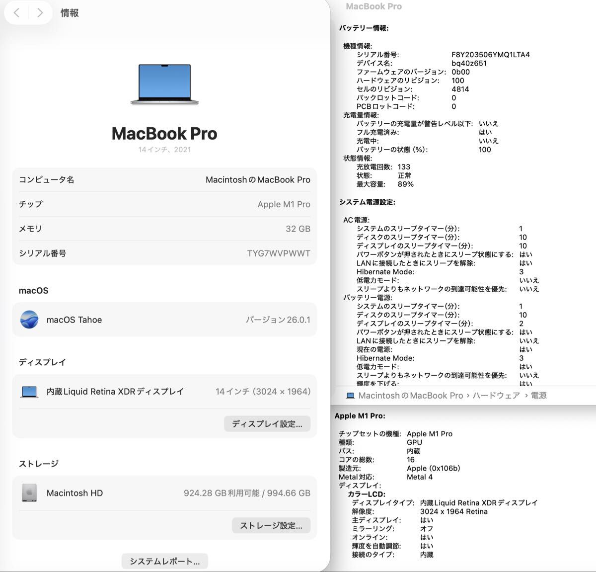 「展示品」Apple MacBook Pro Retina 14inch 2021/CPUM1Pro 10コア/32GB/SSD1TB/GPU16コア/Windows11/office2024/CJ532