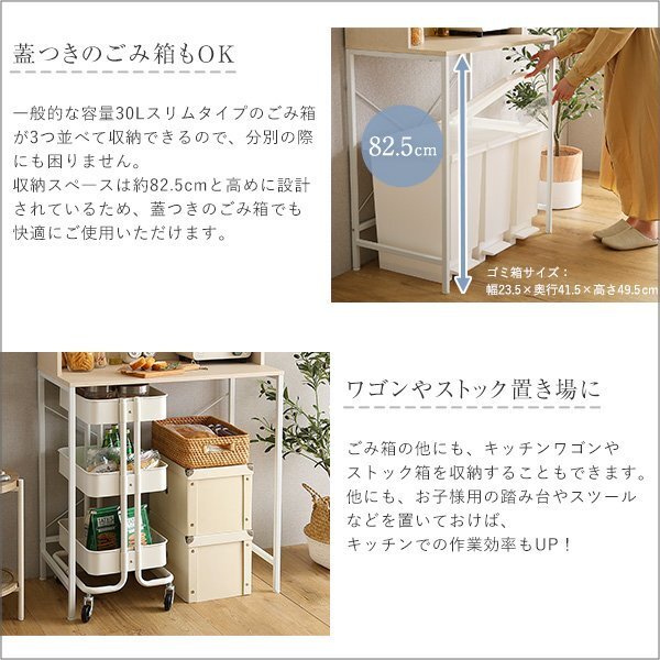 | ごみ箱上の空間をより快適にしたごみ箱上ラックワイドタイプ さわやかなホワイトウォッシュの色目が空間の雰囲気を変えてくれる商品です。 |