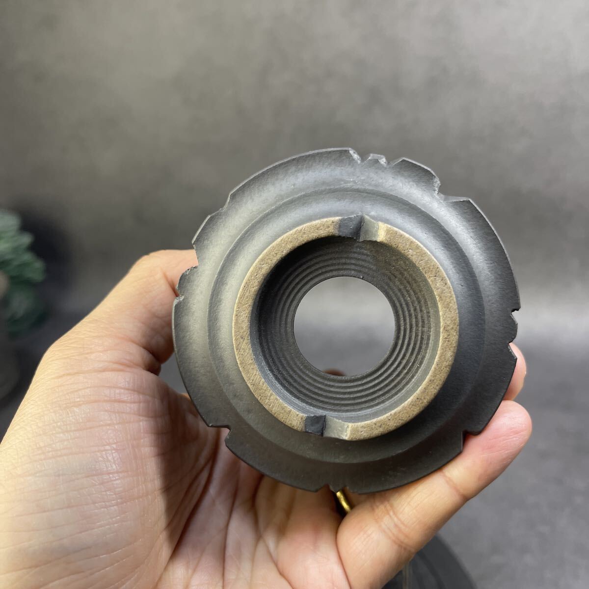 深みのある黒灰色の中に、光を受けるとわずかに金属的な反射が現れます。