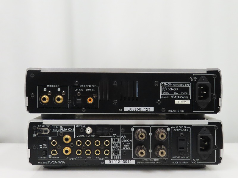 【商品の状態 当店での確認内容】 ■メーカー : DENON ■型番 : DCD-CX3 ■外径寸法 : W300×H80×D310mm ■重量 : 7.0kg ※電源が入りません。 ■型番 : PMA-CX3 ■外径寸法 : W300×H80×D341mm ■重量 : 5.5kg ※音声出力は確認できておりますが、リモコンが付属していない為チューナーは未確認となります。 ※上記により【難あり商品】としての出品となります。 「商品の状態」に関しましては当方主観の目安となります。外観などは中古品で個人差もありますので詳細は画像にてご判断ください。 画像にて不明な点はご質問下さい。 出品商品は画像のものですべてになります。画像に写っているもの以外は付属いたしません。 ※注意※ ヤフオクのシステム上、送料表記が送料未定となっておりますが、送料に関しては全て有償となりますので下記を参照下さい。 【送料 全国一律 2,980 円 沖縄、離島は別途お見積り】 ※送料がお得になるサービスです(下取りシステムのご案内です) ストア決済利用時にクレジットカードやPayPay残高/PayPayクレジットを利用の方は留意点がございますのでこちらを参照上ご利用ください。 当ストアでは商品を安全にお届け出来るよう提携運送会社と協議の上、発泡緩衝材や強度段ボールの使用等 運送会社が指定する梱包方法や資材を採用しております。 より安全にお届け出来るよう商品仕様により梱包サイズが大きくなる場合や個口数が増える事がございます。 【当ストアオークションルールを入札前に必ずご確認ください。】 【落札後の取引手順】 ・落札後は取引ナビにて、必要事項をご入力後、送信ください。 取引終了後48時間(土、日は除く)以内に入力をお願い致します。 ※ご連絡が頂けない場合は落札者様都合でのキャンセルとさせていただきます。 ・落札代金(商品代金+消費税+送料)の入金をお願い致します。 ※大型商品の場合は送料確定後の決済となる為取引ナビを入力頂き、当ストアより送料のご案内が来るまでお待ちください。(土曜、日曜、祝日の場合は翌営業日より順次ご案内いたします) ・お支払い方法はクレジットカード/PayPay残高/PayPayクレジット/PayPay銀行/ゆうちょ銀行のみです。 ※商品代金引換(代引き)のお取り扱いはしておりません。 ※領収証の発行が必要な方はご連絡ください。 ※銀行振込の際の振込手数料はご負担願います。 ・入金確認後に出荷手配を致します。 (原則入金確認後3営業日以内に発送いたしますが、大型や重量のある製品はお時間をいただく場合もございます。) ・発送は当店指定の運送会社の元払いのみでの発送となります。 ※他の運送会社、送料代引き等は致しかねます。 ※落札者様ご自身での運送会社の手配いただく事も可能ですが荷物事故の責任の所在の問題上、梱包は致しかねます。 ※店頭にお越し頂き手渡しも可能(福岡市早良区)です。ご希望の方はご落札後にご連絡下さい。 ・大型/重量物商品の送料につきましては商品の特性上、荷降ろし状況等により送料が大きく前後し運送業者に別途見積りが必要な為、早めのお問い合わせにてお見積り上、入札をお願い致します。 【初期不良の保証について】 ・商品到着後の初期動作不良、また配送中の事故による破損、不具合が有る場合は、商品発送後10日以内に当ストアまでご連絡ください。当ストアでは修理での対応を優先させて頂きますが、修理不可の場合は全額返金させて頂きます。 (商品代金+消費税+送料のお支払い頂いた金額となります) 【初期不良の保証の対象外について】 次の場合は保証の対象外となりますのご留意ください ・ジャンク商品、現状商品、難あり商品での出品商品。 ※難あり商品に関しましては動作確認時に一部動作不良が確認された商品になり、記載している動作確認以外にも、動作不良がある可能性もございます。こちらに関しましても保証対象外となりますことをご理解ください。 ・年代物のオーディオなどで、当店にてわからない範囲で部品が交換されている場合 ・楽器類の特殊機材(マイクロスコープ等)での確認までは行っておりません。気になる方は事前にご質問いただくか、入札をお控えください。 ※初期不良に関しましては【商品の状態】に記載のもの、またそれによって起因する動作不良は対象外です。 ※商品発送後10日を過ぎてのご連絡は対応が出来ませんので、商品が到着しましたらお早めに確認をお願い致します。 【メーカー保証の加入・継承】 ・未使用品、展示品やメーカー保証期間が残っている商品に関しまして、メーカー保証の加入、継承が必要な方は、落札後取引ナビ内にて当ストアにお知らせください。商品発送までにご連絡いただけない場合、メーカー保証の手続きを承れない場合があります。 【評価について】 ・評価不要の場合、必ず取引ナビの「要望欄」にてお知らせください。それ以外でご連絡をいただいた場合、対応できない可能性がございます。一度行った評価はシステム上取り消しが行えませんのでご了承ください。 【入