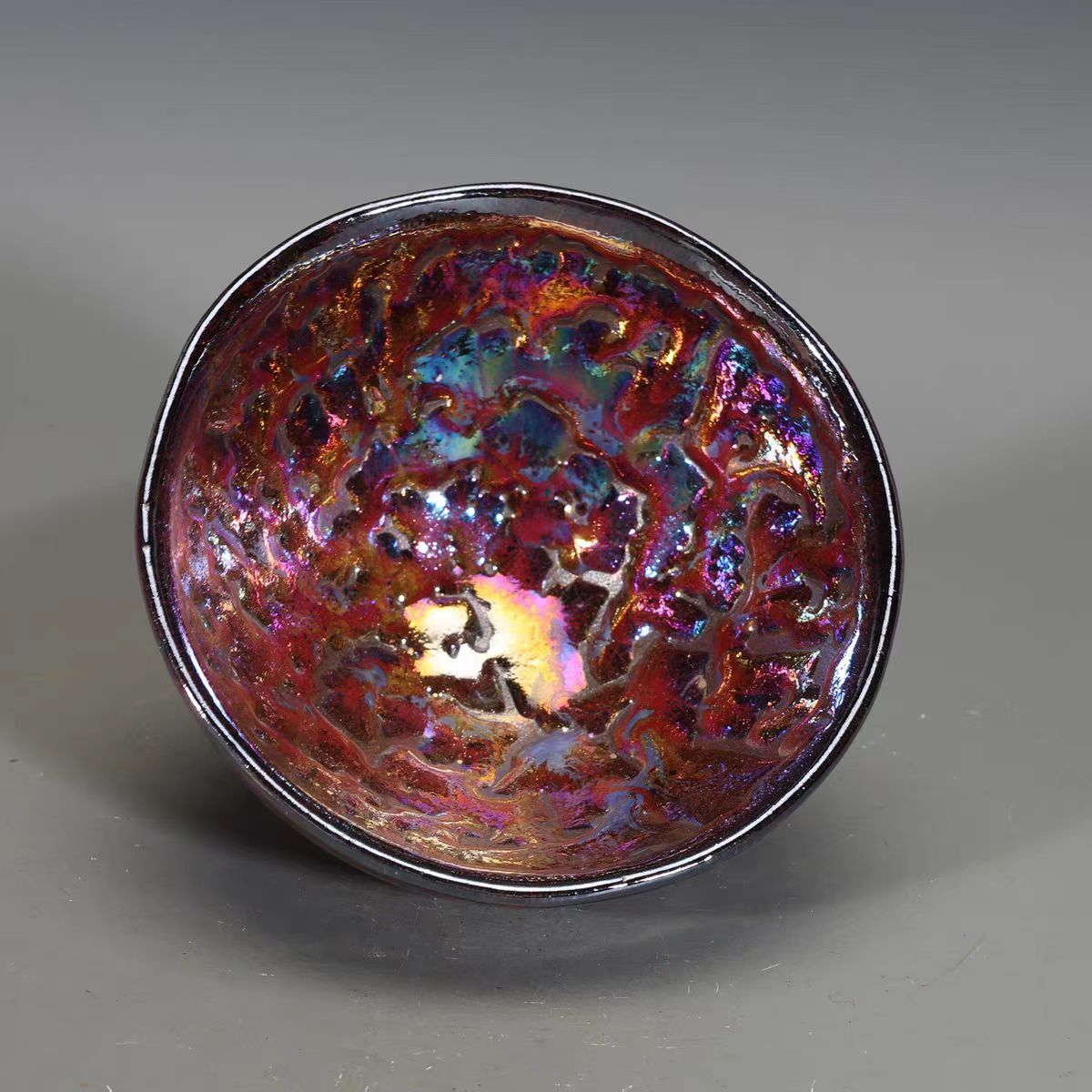 宋代 古陶磁器 建窯 七彩光 窯変 油滴盞 盃 建盞 茶盞 酒碗 供御 瓷器 古擺件 置物 時代物 古董品 骨董 旧家蔵出し 唐物 中国古玩 古美術品