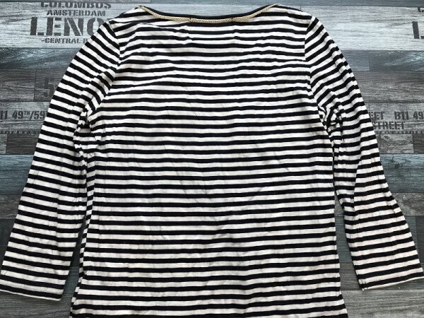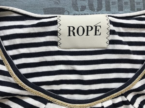 ROPE ロペ レディース 日本製 ブレード襟 ボーダー柄 リヨセルコットン 七分袖カットソー M 紺白 です。